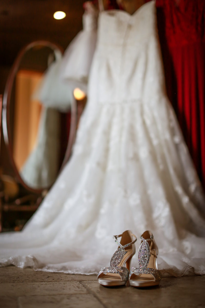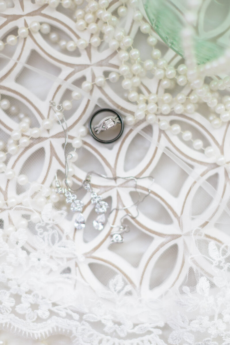 The details during bridal getting ready photos are typically both rings and engagement ring, shoes, veil, jewelry, bouquets, and anything special. Something I like brides to consider is to consider is to have an invitation to include in detail shots. This brings them back to the whole experience of the big day. Something helpful for me is when brides have all of these little details (along with the dress) in one area. If everything is in one place, I don’t have to bother you or your bridesmaids to find stuff while you’re trying to get ready. I also recommend finding a cute hanger for the dress as many brides regret the plastic ones they had in their dress photos. Once I shoot everything that I need to here, I am able to move onto other important photos.